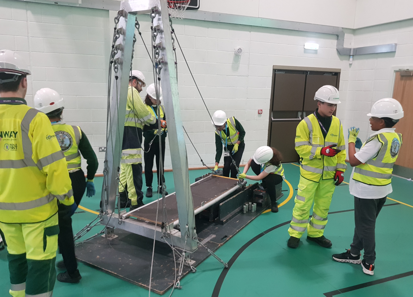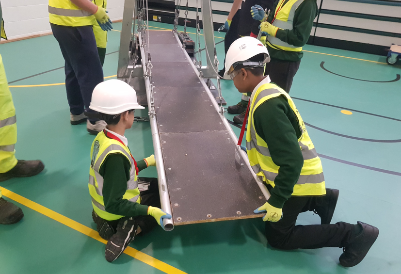Year 7 and Year 8 students took part in a careers workshop called Build a Bridge with FM Conway. The workshop took place in the sports hall.